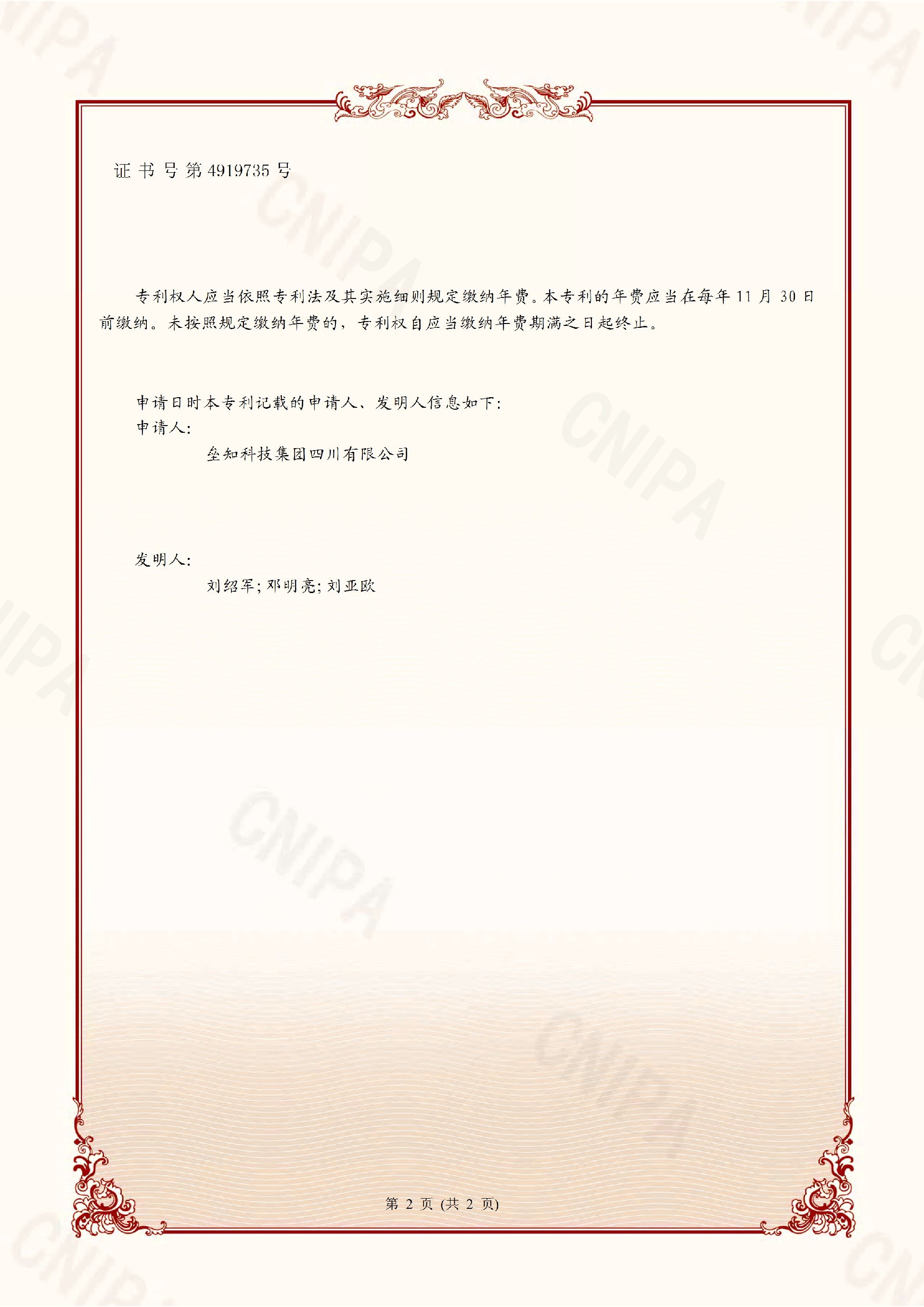 发明专利证书